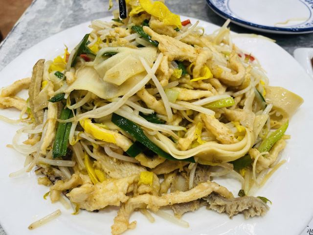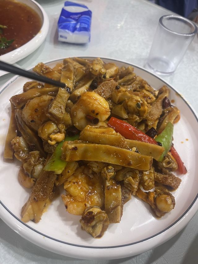 当地一家开了有些年头的清真餐馆,在当地知名度很高,店内宽敞明亮,菜量也很大,价格实惠,属于很接地气的那种餐馆。老爆三、黄焖牛肉都是必点的菜品。