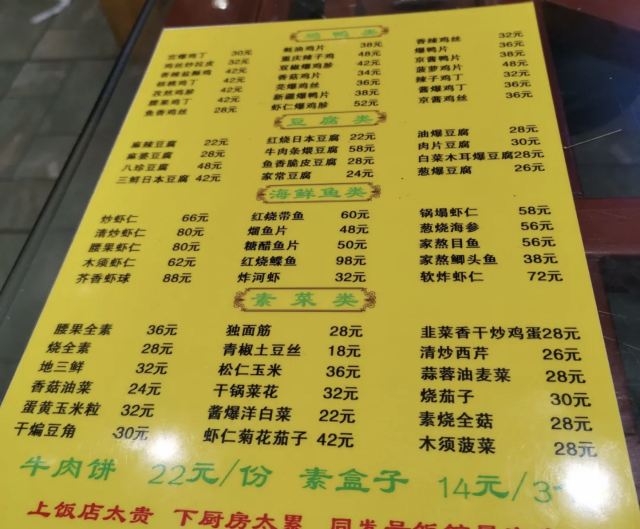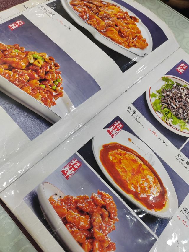 八珍豆腐煲,老爆三,锅塌三样,水爆肚,乾隆白菜,海鲜霸王茄子,奶爆,醋溜木须,芝麻糖醋里脊,独面筋,红烧牛窝骨筋,孜然羊肉,八珍豆腐