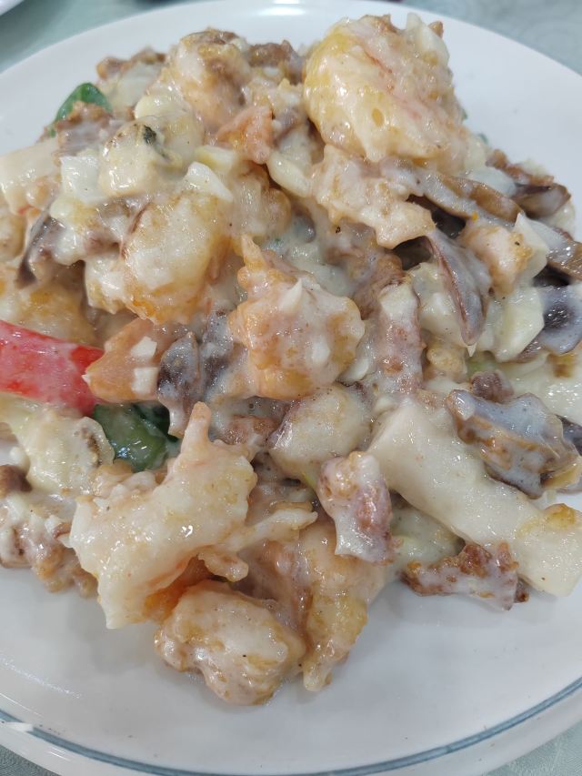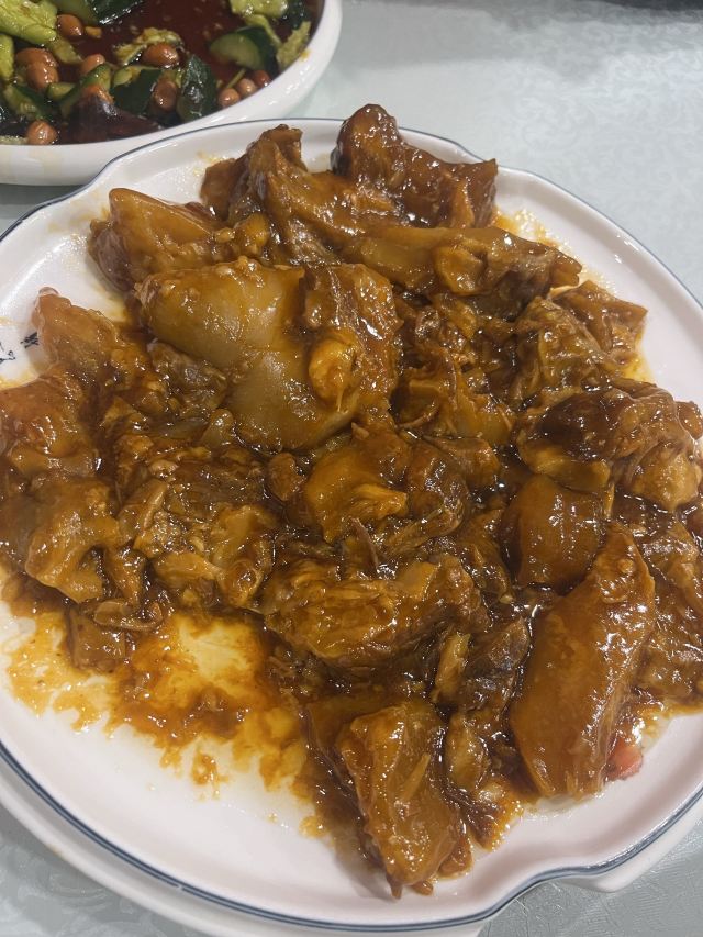 天津是真火啊!十点半到,险险得到最后一个小桌☺️服务员都是老手,点菜麻利,后台上菜也快。牛窝骨名不虚传,软烂入味,菜量惊人。面筋老妈念叨了好几次,终于来天津吃上了,明油亮芡,出菜漂亮。奶爆菜量大,食材种类多,但是我们真不习惯这个味道,抱歉剩下了😓 门口车位比较紧张,早来第一波能放,后面全得其他地方自己想办法了。