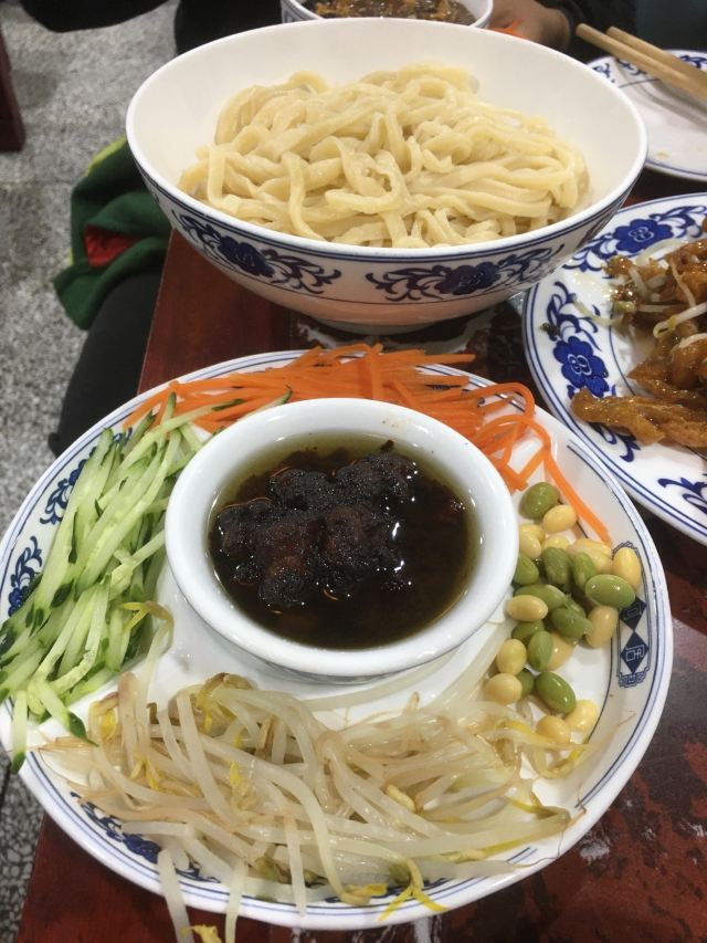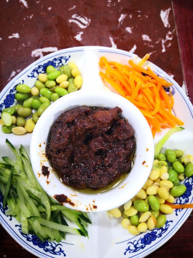 天津人喜欢吃面,过节吃面,喜事也吃面,但是好在很多地方的面都已经改良的没有天津味道了。九河居主打天津传统捞面,面是手工的,劲道,配菜也很“天津”,糖醋面筋,炸河虾,炒合菜,炒鸡蛋都很不错。