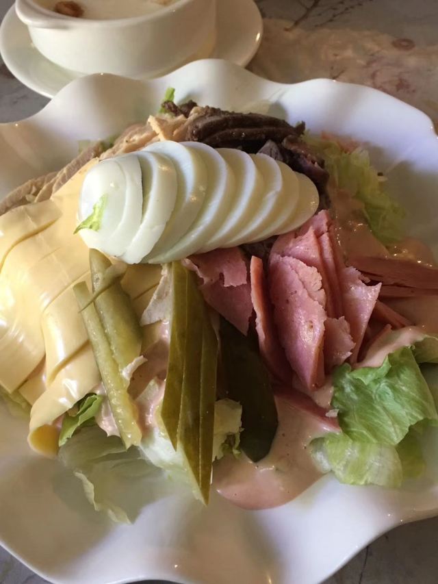 小伦敦看这餐厅的风格与氛围感觉开了很长时间 非常符合五大道的气质 餐厅内格局分配合理 每个房间都有3.4张桌子间距挺大 传统的西餐必须来一份罐闷牛肉 牛肉略微有些口重 肥肉相间 主厨沙拉量大饭量小估计能吃饱 鸡排酥脆香嫩 个人更喜欢某士的酱汁 服务比较满意 这里特别适合安静的聊天