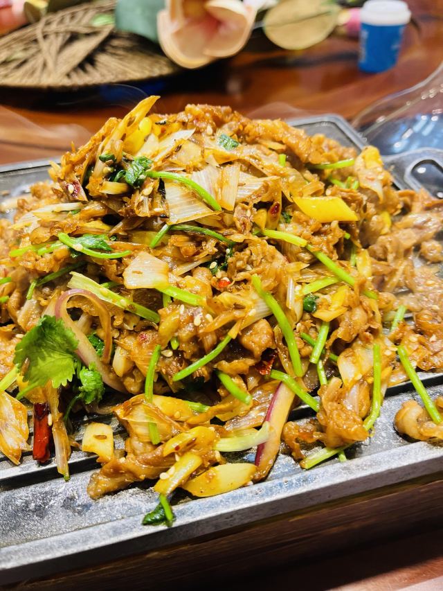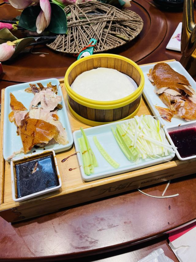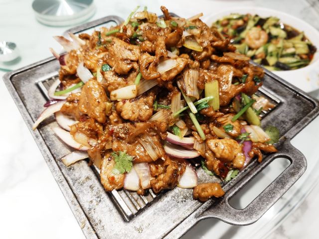 海鲜,烤鸭,茄夹,菠萝虾仁,螃蟹,海鲜疙瘩汤,酥不腻烤鸭,特色熏排骨,清蒸多宝鱼,牛肉粒,大饼酱肉,富贵灌汤虾球,猪蹄拼盘,爆炒三样,干锅千页豆腐