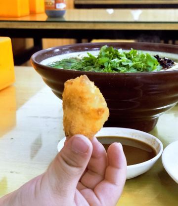 杨贵妃QD青岛吃咖在长辈们连续三天早餐吃“米记”后, 贪新鲜的我终于受不了了, 带娃直接打车来小舅妈推荐的拉面店, 因为她头一天说“好吃”了两遍, 不来对不起她的赶脚 炸豆腐必须点, 下单现炸上桌还烫手, 配着酱汁蘸着吃不要太香呀, 里边的豆腐嫩的像奶酪, 外皮酥到掉渣! 拉面汤绝对是牛骨熬的老汤了, 浓的都发粘, 味儿太足了 就是有点儿咸, 老汤嘛能理解, 然后我最后喝了两碗水, 还发现了墙上的奖牌 素什锦这个挺好, 配菜超多种类的, 清淡口儿搭配拉面正好。 牛肚有点儿咸, 讲真我算是挺重口的了。 再加上牛肚感觉放一段时间了, 口感虽然是不错, 但是新鲜度上差了点儿。 这我也很满意了, 换花样儿的心情总是很愉悦的。 下一站,戴记糖坊伴手礼, 走起……