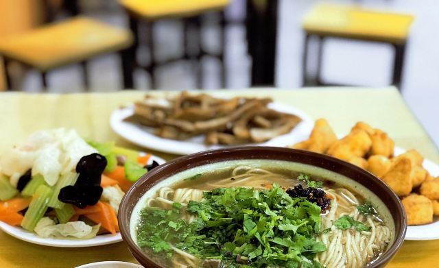 拉面,炸豆腐,特色炸鸡排,酱牛肉,鸡蛋豆皮,辣子,素什锦,炝土豆丝,凉面,拌羊脑,云吞,果子,卤蛋,拆骨肉,馄饨,烧饼,炒面,鸡蛋,豆腐丝,番茄炒面,糖醋面筋