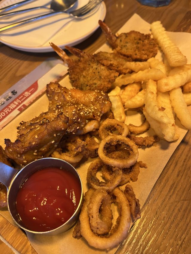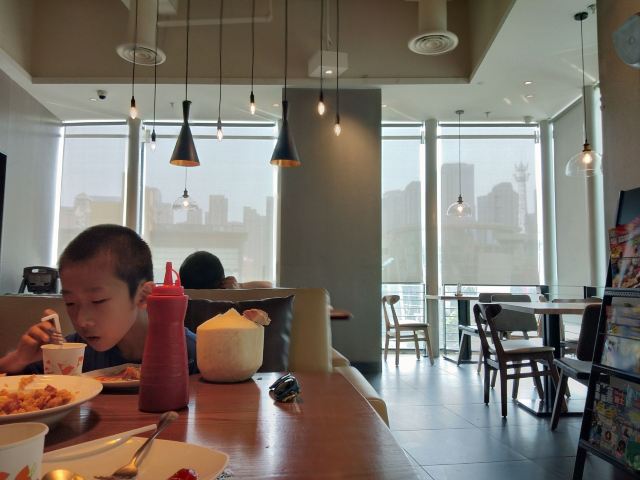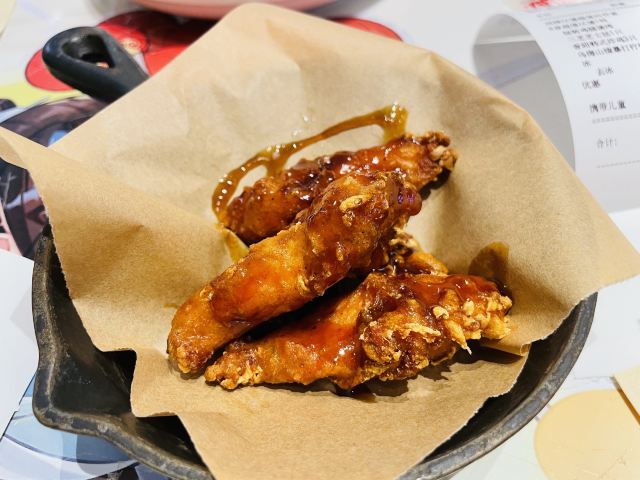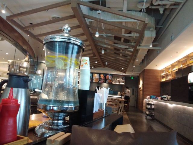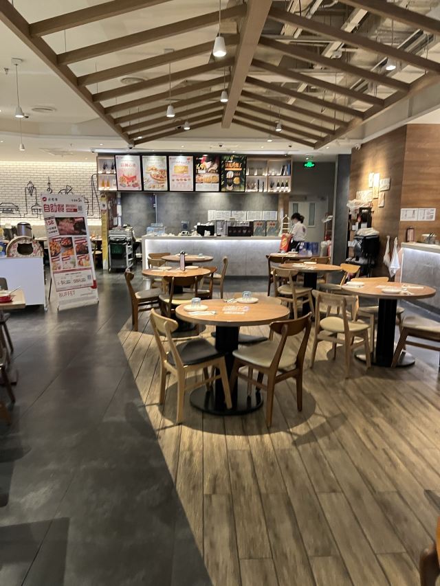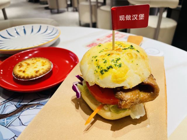 大悦城换地儿啦,比起之前在中心区的商铺里,开放式的环境更清新了,更休闲,空间也更大了,门口还有放猫和老鼠看,周末的下午店里还有不少年轻人。吃了新出的汉堡单人餐,鸡腿汉堡很好吃,主要是鸡腿肉好吃,超大一块很嫩多汁,生菜新鲜,尤其是大块的番茄特别好吃。不过忘记找店员要手套了,刀叉吃有点费劲。甜炸鸡是鸡翅肉,脆皮很香甜。芝士挞馅儿很好吃不腻,外皮是像饼干的酥皮。山楂柠檬茶太甜了。服务很热情周到,会主动问对菜品的评价,上餐超快不用等。对新品汉堡还是很满意的。