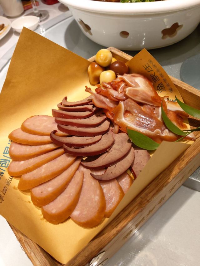香酥烤鸭,百年酱香包,三文鱼,老火梨汤汤,三鲜包,玉米粥,海鲜大拼盘,沙拉,香熏大排,老醋六样,精品烤鸭,百年酱肉包,豆豉鱼,砂锅手掰豆腐炖肉,葱油罗马生菜,粉丝煲,码头杂鱼锅,特色抱腌大鲈鱼,脆香牛肉粒,天津传统包