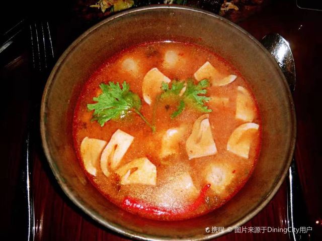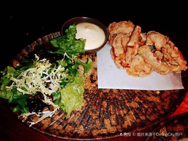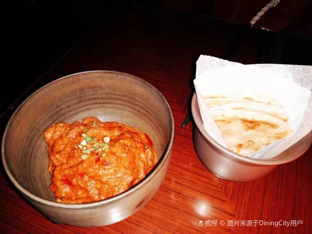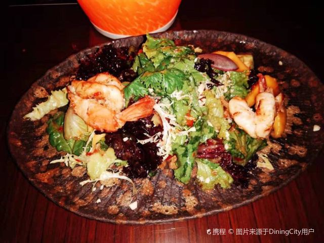 Queenie#餐厅周#预定的套餐,比我预期的要好,一顿饭吃尽了泰式、日式、印度的东亚、南亚风味。没有给足5颗星的原因是,用餐的光线实在是太暗,以至于我打着闪光灯拍照,照片也不好看。 泰式芒果大虾色拉:很大的虾肉,很大的番茄,甜辣汁用得巧妙。虾肉如果再Q弹一些会更好,现在觉得肉质有点粗糙。 日式炸鸡块,虽然不像美式的炸鸡那样豪迈澎湃,但味道也不错,而且不油腻。 在吃里面肉的时候也完全没有干柴的感觉。 冬阴功汤,配料用的非常合适,香茅、南姜、青柠叶、指天、草菇,味道搭配的相得益彰。对我而言是辣了一些,一定要趁热吃,温度降下来之后就没有那种爽的感觉了。 印度焖鸡,一道完全不靠外表的菜。一端上来的时候,我觉得特别难看。搭配的印度薄饼,有点像我早饭吃的手抓饼的缩小版,烘的火候刚刚好。用薄饼去沾取肉表面的酱汁,很好吃。 里面的鸡肉也是不干不柴,比较嫩。如果不是有搭配饼皮,来一碗白米饭,也很好。 最后给我上了一份水果拼盘,本来以为应该搭配甜的东南亚点心,比如雪媚娘或者椰子糯米之类的。 听服务生说,餐厅周的这个套餐非常划算,如果平日来单点,价格大约在600多,现在活动期间的套餐价是288元。 用餐的只有我一个,我一个,一个,个。难为厨师了,特地为我一个人烹调。 偶尔来两个老外也是在吧台喝酒。