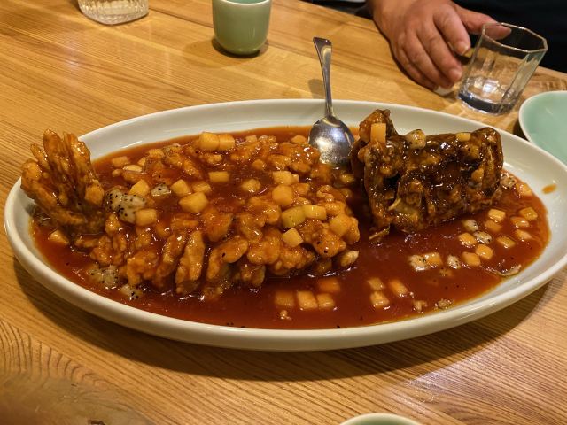 一家专门做天津菜的餐厅,店内装修比较有格调,散座和单间的设计风格都各有特色。招牌的烤鸭,鸭皮脆香不粘牙,入口即化,鸭肉饱满嫩香。糖醋小排酸甜口控制得刚刚好,选的带脆骨的肋排,很有嚼劲,推荐一试。