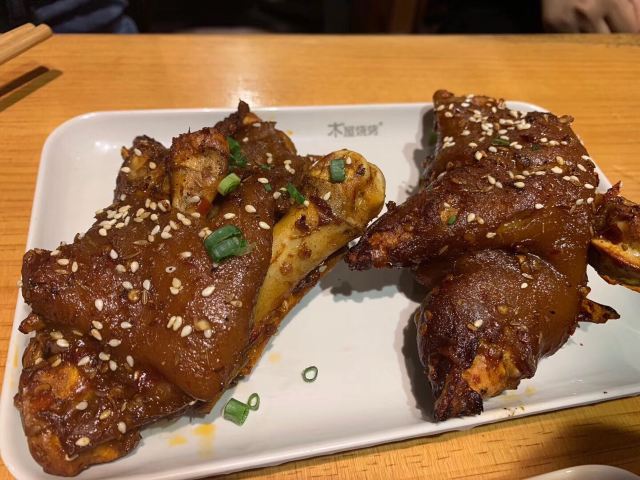 正好想吃烧烤了,在小伙伴的推荐下来到了这家木屋烧烤,他们家烧烤的种类好丰富,都是烤好再送上桌的,我们点的「烤羔羊肉串」很好吃,羊肉肥瘦相间,香气十足。「木屋小串」有点像小时候吃的那种一串串的小肉,「烤鸡脆骨」我也很喜欢,口感很丰富噢。