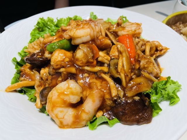 铁勺凤爪,八珍豆腐,烤鸭,宫保虾球,宫保鸡丁,蓝莓山药,担担面,塞外秘制羊排,铁勺狮子头,罐焖牛肉