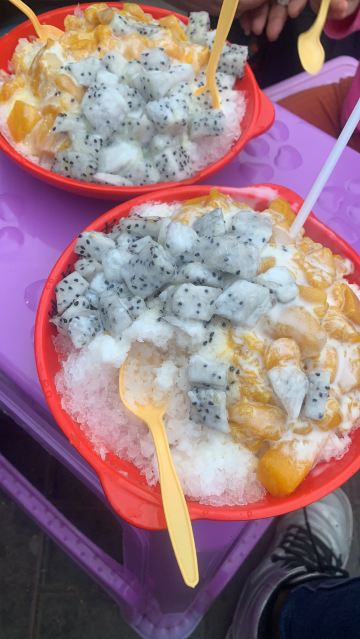 大杜杜冬冰冽冽虽可畏,夏冰皎皎人共喜。 休论中使押金槃,荷叶裹来深宫裹。 胸烦肺涸聊一苏,任尔青蝇相趁死。 经时不坏已可怜,济物之功尚如此。 人言霜雪比小人,我谓坚冰似君子。 ――《食冰》宋 孔武仲 今天又来到铁真刨冰,那时这里就是卖刨冰没有这么火,今天这么火但味道依然好。 刨冰,是一种夏日常见冰饮。将冰块刨成雪花,淋上炼乳、糖浆,再配以各种水果或其他配料而制成的高档冷饮。两个孩子点了芒果红豆炼乳、芒果霸王冰还有酸梅汤,刨冰冰爽滑润,入口即化暑气顿消。 刨冰在中国历史悠久。中国人吃冰食的传统是很长的。由于藏冰业的历史长久,到了唐宋时代,特别是在宋代,皇家和民间的藏冰活动都极具规模,在夏天,可以有大量的冰雪从冰窖中拿出来供给使用,民间的冰雪买卖更是活跃,这当然就促进了冰食的发展和普及。