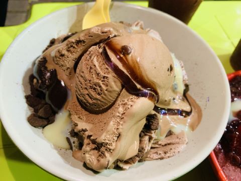 佛系紫梦星辰他家的刨冰真是钟爱,巧克力红豆炼乳刨冰,必点。
