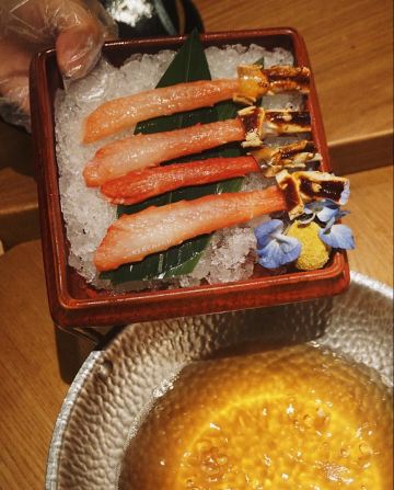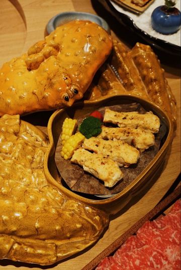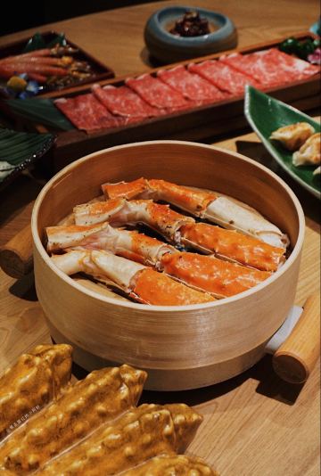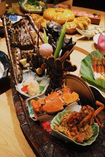 根正苗红的小阿轩蟹神·会席(餐食篇) |沈阳 上条介绍了蟹神·会席的装潢,这次分享一下餐食方面。 常吃日料的朋友不难回忆,只要和日料相关的餐厅基本都是方桌。 我同样也提到过,蟹神·会席的精神内核是追寻文化回流,所以它把中式圆桌会席文化也加了进来。一楼长桌,二楼圆桌。 我选的是999位餐,主要是偏向帝王蟹料理。 以下是位餐内容: 日式前菜拼盘、法国蓝龙、真鲷刺身、芝士焗帝王蟹、蒸帝王蟹、炭烤海鳗、烤和牛、和牛寿喜锅、刺身三拼(紫胆、三文鱼、甜虾)、蟹腿茶碗蒸、金汤蟹钳、蟹肉土瓶蒸、蟹肉天妇罗、蟹黄泡饭、海胆煎饺、手握、甜品、水果拼盘 如果只看位餐价格,蟹神在沈阳来讲那是妥妥的高消费餐厅。但对于该餐厅所针对的顾客人群来讲,算是很高性价比了。套餐里单拎出来个蓝龙在上海西餐厅就多少钱了? 沈阳新一代高品质餐厅就这么几家,蟹神·会席在其中对比下来,装潢设计投入大,服务上也很下功夫。位餐内容品质较高,菜的品类也多。