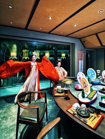 Doris_熙爷🆔Doris_熙爷 蟹仙唐朝 在沈阳,我的宴请首选永远是这里—蟹仙唐朝 从开业至今,作为范日道集团的忠实追随者,蟹仙唐朝始终是我心中无可替代的盛宴之地。 这一次,推门而入,便是大唐。 幽深的庭院,一步一画,雪落之时更显禅意。 在这里,宴请不仅是用餐,更是一场文化的沉浸—— 名画入馔,舌尖的千年美学 每一道菜,都是一幅流动的传世画。 · 《韩熙载夜宴图》以蓝鳍金枪鱼为乐器,蟹腿作人,鲟鱼子酱点缀如铎钉,细节里藏着一个时代的风雅。 · 《簪花仕女图》取自蓝鳍金枪鱼最珍贵的部位,入口即是雍容。 · 《瑞鹤图》中仙鹤翩然,实则是新西兰黑金鲍与枪鱿鱼的细腻对话。 还有《梅雀图》《富春山居图》……食材与艺术相遇,舍不得不吃,也舍不得不看。 商务宴请的隐逸之选 包房名雅景幽,过廊挂画,可赏雪、可谈事、可静心。 席间古筝轻拢,舞姿翩跹——那天兴起,更与舞者共舞一曲,衣袂如画,镜头定格皆是惊艳。 宴的圆满,不止于味 从海胆酱的丰润到蟹肉天罗妇的酥脆,从非遗手作伴手礼到服务生温暖的微笑——这里懂得以细节动人,更懂如何成全一场体面的相聚。 如果你也在沈阳,想要一场既有底蕴又不失尊贵的宴请,我会轻轻说: “去蟹仙唐朝吧,那是连时间都愿意停留的地方。” #沈阳宴请天花板 #蟹仙唐朝 #名画美学宴 #商务宴请首选 #沈阳高端餐厅 #传统文化与现代盛宴