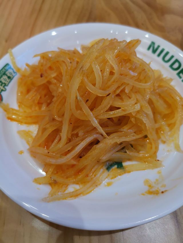 在皇姑万象汇负一层。每天顾客都挺多的,座位几乎都满。 套餐包含一碗面,牛肉,小菜。面身可以选宽细,我喜欢吃宽的。汤的味道很鲜美,滋味也挺足,牛肉的质量挺好,但是片数太少,只有薄薄的三片。建议牛肉直接吃,不要跑到汤里。小菜土豆丝是辣的。门口有免费的茶,但是是热的。