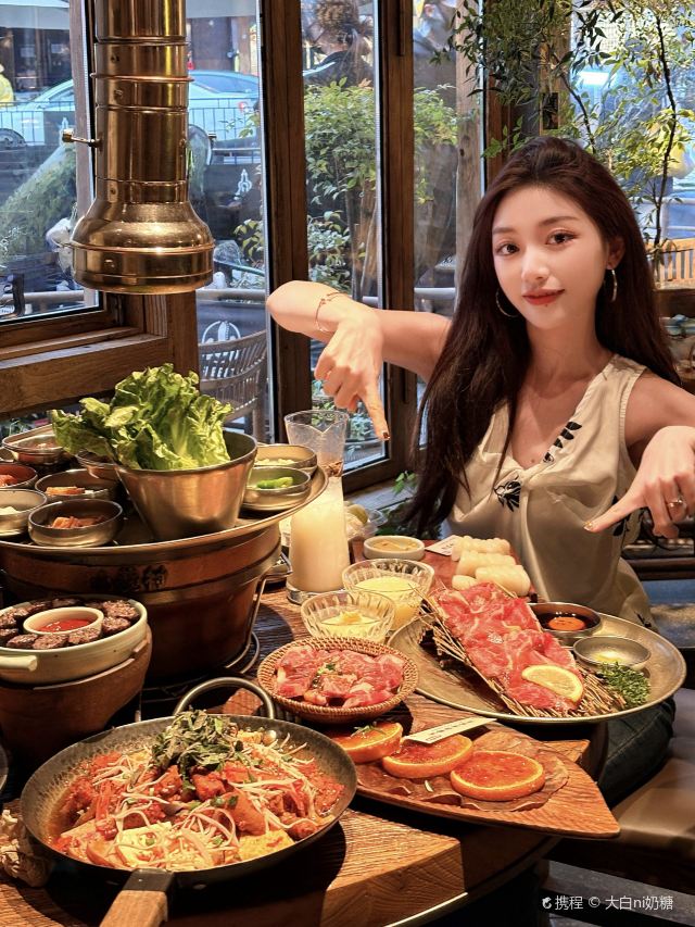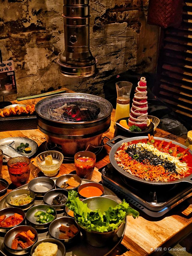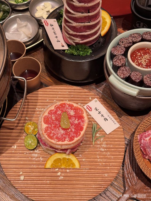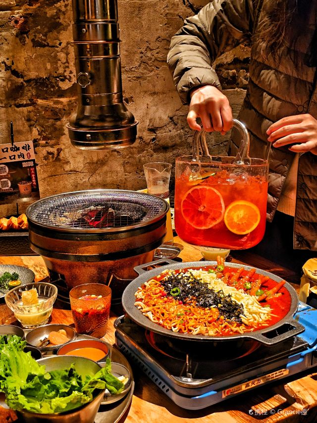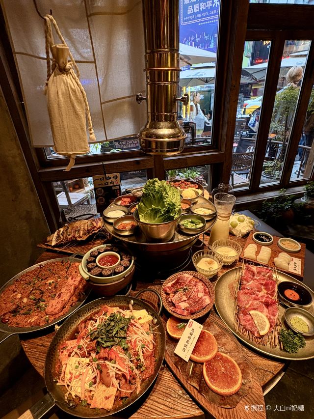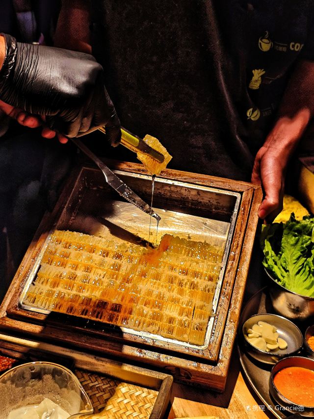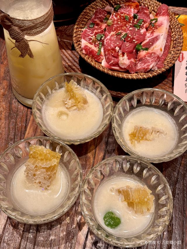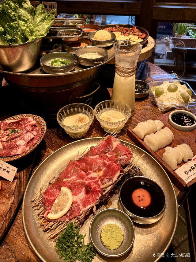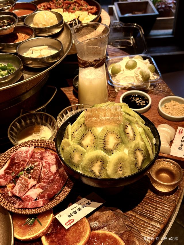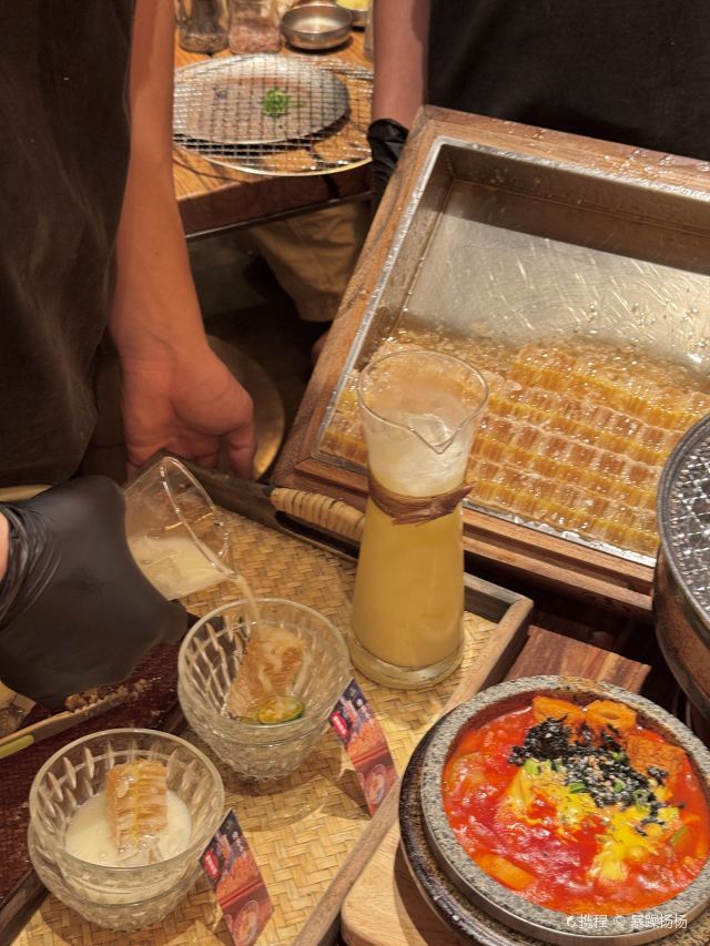 Grancie德开放式的厨房配上侘寂风的装修环境太沉浸啦 他家小菜会有人现做现摆,一大盘子12种还可以无限续加🥢店里有自己的咖啡豆子排队时还会给试喝💗 还有白茶可以自己配上小料🌸暖暖的泡一大杯 🥩肉品真漂亮,搭配着水果摆成了不同的造型 有装在小罐子里的山葵烤肉🍶配上现磨的山葵酱清清香香的很是那个味道~ 好多次在网上看到的蜂巢米酒他家也有!! 小哥现从一大块蜂巢上切下来两块放在杯中,淋上奶香奶香的米酒配上烤肉吃,真的绝配,就是排队的人有些多,想聚餐或者是约会的宝子可以提前叫号,然后来韩百溜达一圈儿,目测是新台下一个热火的打卡点啦~ #沈阳美食 #沈阳西塔美食 #沈阳旅游攻略 #韩式烤肉
