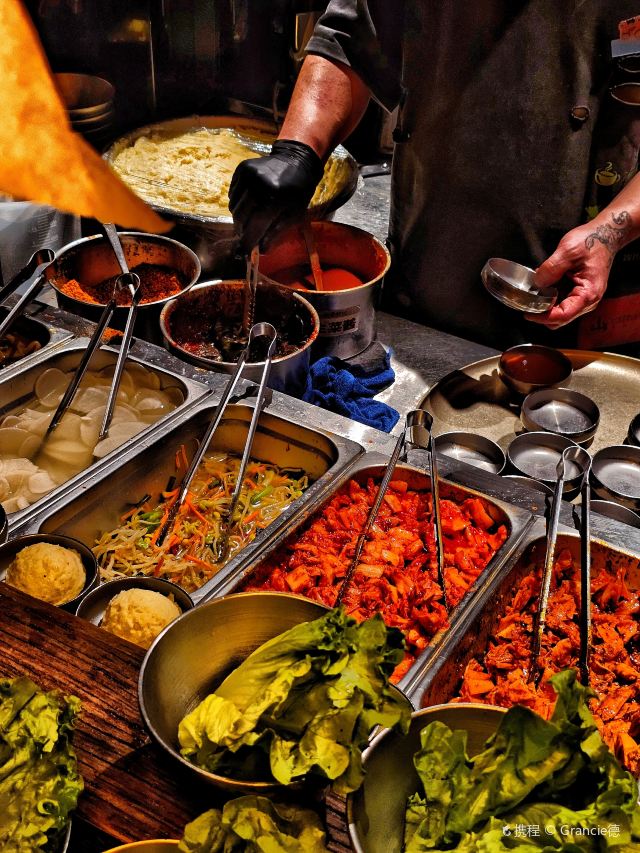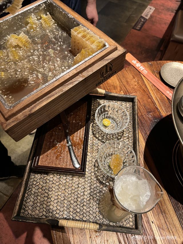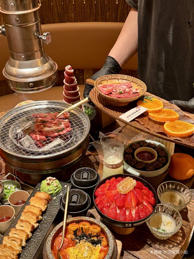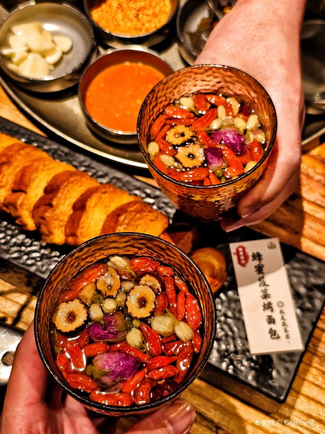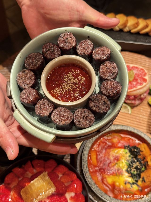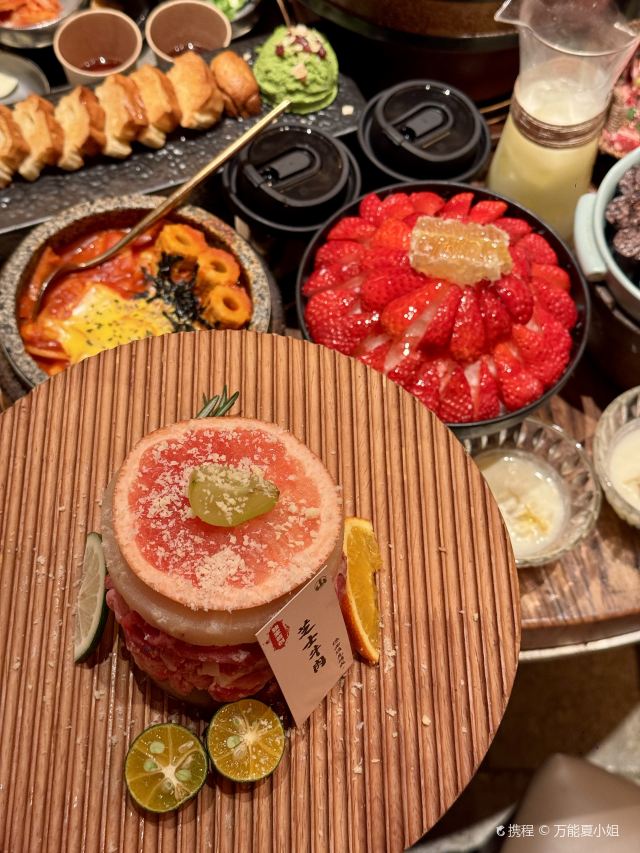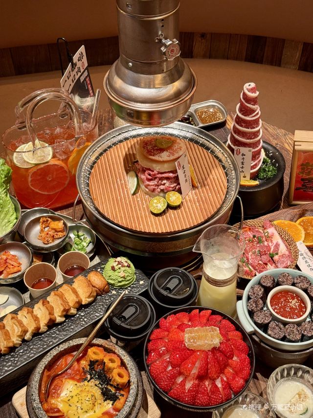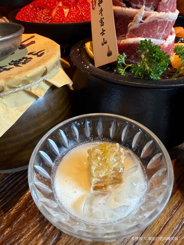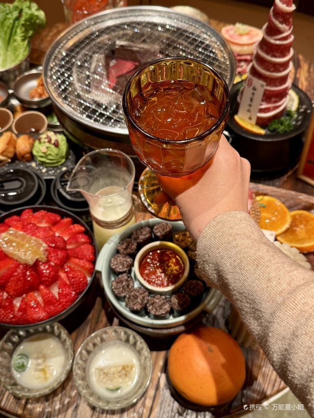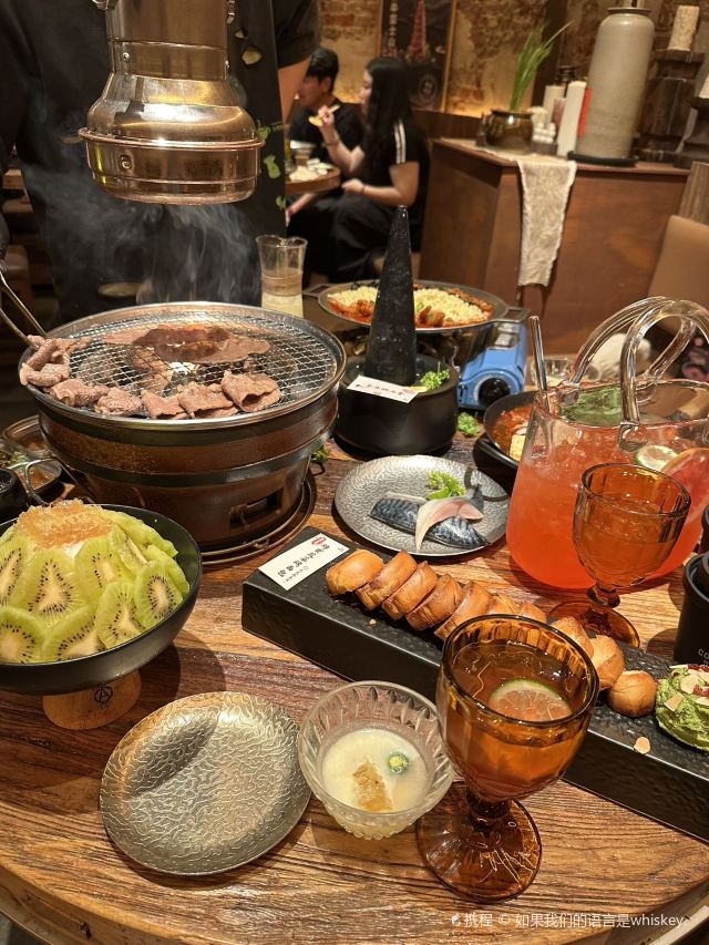Grancie德开放式的厨房配上侘寂风的装修环境太沉浸啦 他家小菜会有人现做现摆,一大盘子12种还可以无限续加🥢店里有自己的咖啡豆子排队时还会给试喝💗 还有白茶可以自己配上小料🌸暖暖的泡一大杯 🥩肉品真漂亮,搭配着水果摆成了不同的造型 有装在小罐子里的山葵烤肉🍶配上现磨的山葵酱清清香香的很是那个味道~ 好多次在网上看到的蜂巢米酒他家也有!! 小哥现从一大块蜂巢上切下来两块放在杯中,淋上奶香奶香的米酒配上烤肉吃,真的绝配,就是排队的人有些多,想聚餐或者是约会的宝子可以提前叫号,然后来韩百溜达一圈儿,目测是新台下一个热火的打卡点啦~ #沈阳美食 #沈阳西塔美食 #沈阳旅游攻略 #韩式烤肉