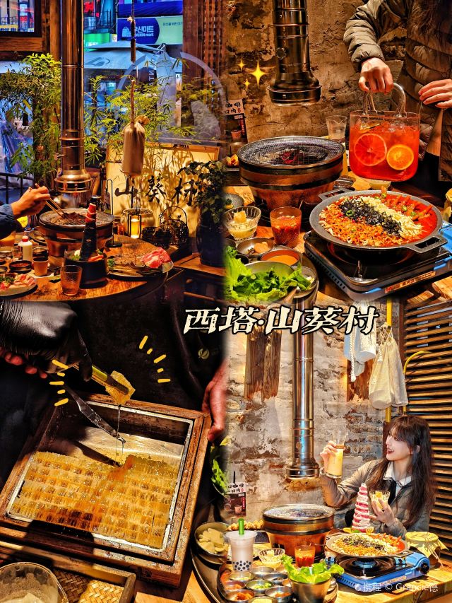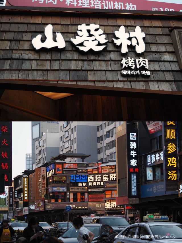 爱旅行的玲娜贝昕沈阳西塔美食暴走攻略📓 人均50吃出首尔街头感🇰🇷 🚇地铁2号线市图书馆站C口步行5分钟 🍗必吃小吃打卡 1️⃣清堂洞炸鸡:酥到灵魂出窍 👉🏻四拼炸鸡闭眼冲! 芝士雪花 葱香 蜂蜜 香辣四种口味✅ 外皮酥脆到掉渣,鸡肉嫩到飙汁🤭 💰人均30,建议2-3人分享 2️⃣达高奇肉食家:韩剧同款小吃天堂 🌶️辣炒年糕+鱼饼汤CP锁死! 年糕软糯弹牙,甜辣酱汁裹满鱼饼 一秒穿越韩剧大排档🤤 🍢炸物混拼18r任选6种 推荐紫菜卷/鱿鱼圈🦑 吃完逛逛拍拍照 📸出片指南 ✔️清堂洞红砖墙+霓虹灯牌=韩系ins风 ✔️延边街路牌+彩色卷帘门假装在首尔 消化完就可以冲晚饭了😄 必吃烤肉!山葵村烤肉! 推开门帘的瞬间整个人都松弛下来了❤ 青瓦白墙爬满栀子花 木灯笼的光晕温柔得像老家的月光🌙 风一吹落雨铃铛叮咚响 烤肉香混着咖啡香往鼻子里钻☕ 🌿 说几个让我惊喜的点: ✔️第一次见到把咖啡和烤肉组CP的! 一口咖啡一口肉🐮 油脂香混着咖啡醇苦真的很奇妙👍 ✔️焦糖橙花纹肉烤得滋滋作响 包着现切橙子吃意外解腻 偷偷学了这个神仙吃法🤤 ✔️米酒里居然能吃到整块蜂巢! 清甜蜂蜜在嘴里爆开的感觉太治愈了 坐在这么好的环境里吃完这顿🍚 突然理解为什么天天排队了 这大概就是牛马人最需要的疗愈吧~ 有烟火气却不吵闹🌬 精致里透着山野的拙朴🍃 🐮山葵村烤肉(西塔店) 📍和平区西塔街85甲号一层 #山葵村烤肉#西塔美食#西塔烤肉#沈阳烤肉#沈阳美食攻略