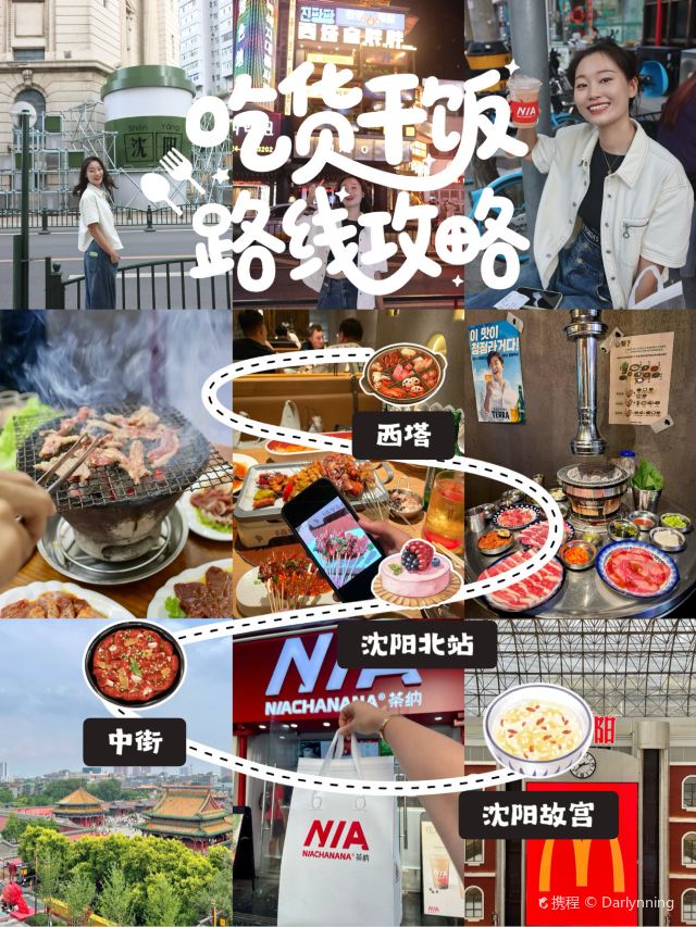 Darlynning🔥在沈阳狂炫3天胖5斤!这篇攻略把本地人胃都吃透了(附奶茶/烤肉/鸡架隐藏吃法) Day1️⃣:落地就被沈阳的热情拿捏了 ▪️晚上9点半到沈阳北站,提前1小时线上取号,刚到就吃上了野人部落!东北老铁是真热情,不光给送菜还送饮料,瞬间暖到心窝里~ ▪️酒店定在北站附近太明智了!去哪儿打车都不超10块,懒人福音实锤! Day2️⃣:从早(午)到晚逛吃不停歇 ▪️又双叒没早起!错过小河沿早市有点小遗憾,中午随便找了家麻辣烫,是偏冒菜的口感,不算惊艳,只能说垫肚子刚好~ ▪️中街Citywalk开启!盛京百货大家庭地下一层的工业风打卡街一般般,但四楼能免费俯瞰沈阳故宫全景!不想进沈阳故宫的朋友可以来蹭个视角~ ▪️八经街咖啡小巷真的好拍!英国汇丰银行奉天支行旧址能拍到沈阳咖啡杯标志,随手一拍都是氛围感~ ▪️不爱喝咖啡星人挖到宝!本地奶茶“茶纳”太绝了!10-14元一杯,清爽不腻,要不是怕长痘我能炫10杯! ▪️晚餐冲了种草超久的“千里马烧烤二部”!老式泥炉烤肉+麻酱加糖小料,香到跺脚!自己烤的油边第一次吃,焦香爆汁谁懂啊!人均85吃到撑,等位半小时完全值! ▪️吃完去西塔看夜景,朝鲜族风情拉满!冰箱贴15-20元两个,价格感人到想all in~ Day3️⃣:为了烤肉愿意等1.5小时! ▪️依旧没早起哈哈~中午直奔西塔的山葵烤肉,等位1.5小时也值了!店内超有韩系氛围感,店员帮烤解放双手~ ▪️强推牛肋条和原味牛肉!嫩到入口即化,比北京吃的好吃N倍,人均才110,性价比绝了! ▪️回京前冲去白云山路买老奉天焦火鸡架,8块一个,大糖大醋的口味很独特,算是打卡过本地特色啦~ ▪️路上偶遇水果超市惊到了!荔枝1.99一斤!最后再去茶纳打包两杯奶茶,带着沈阳的甜回家~ 沈阳真的太适合逛吃了,下次还要来炫烤肉!姐妹们有啥想问的评论区戳我~ #沈阳旅行 #朋友圈被问爆的地方 #当地才能吃到的美食 #和朋友出去撒欢儿 #沈阳旅游攻略
