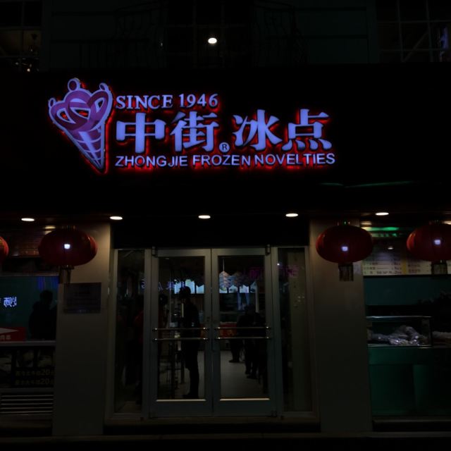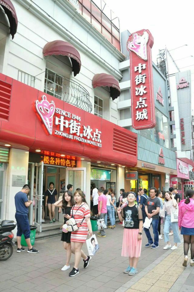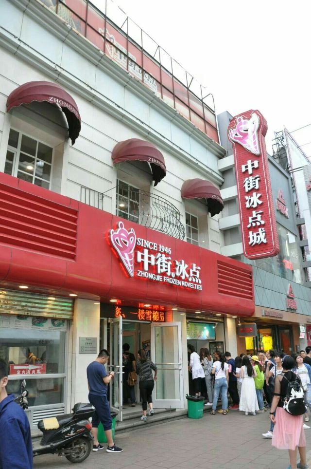 ZHONG JIE ICE CREAM中街冰点,这是小时候的回忆,是我们这代人童年奢侈品的代表,满满的都是回忆。如今的中街冰点,老地方从未变过,里面装修过很多次,依旧是一楼吃饭二楼冷饮,味道就是小时候的味道,只是门口的大肉串价格一直在涨!