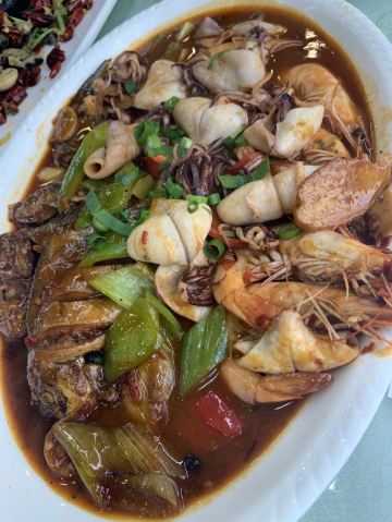 杭椒肉段烧茄子,灌汤包,锅包肉,肉三鲜汤包,猪肉大虾汤包,酥淋黄花鱼,白灼三样,腊八蒜炒肝,红烧肉,素荟汤,溜三样,肉三鲜,生炒芥兰苗,老味道拌菜,肉末秋葵,五彩拉皮,大虾陷,蛋黄焗南瓜