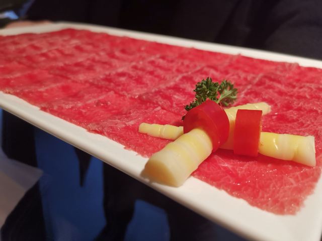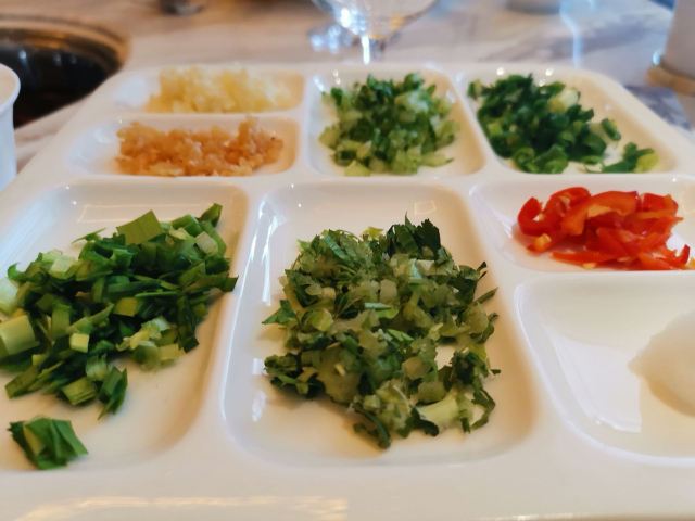 琛心琛意拔草了一家颇有档次的火锅店,汤城料青山,位于十一纬路40号。 从门脸看不出火锅店,店有两层。装修精美,一层散台,洁白为主色,非常漂亮。二楼有包房,各种装饰都十分的上档次。餐具也是精美绝伦,看着都很贵重。 服务态度挺好的,我和朋友选的招牌松茸锅底。松茸顶级食材,汤确实鲜美。可以先盛一碗直接喝。 这里的酱料是特制版,叫八味酱料。盘中八个小格,不同食材,然后把这些按个人口味都倒进餐盘中加上店内特制海鲜汁,咸鲜香。 食材很干净,质量也是上乘。多数菜品还是偏港式,肉类不散,菜类清新,还有其他东西也都可口。炸响铃我很喜欢吃。 松茸汤底吃完胃很舒服,没有丝毫的不适。吃完这顿,精神焕发了许多。