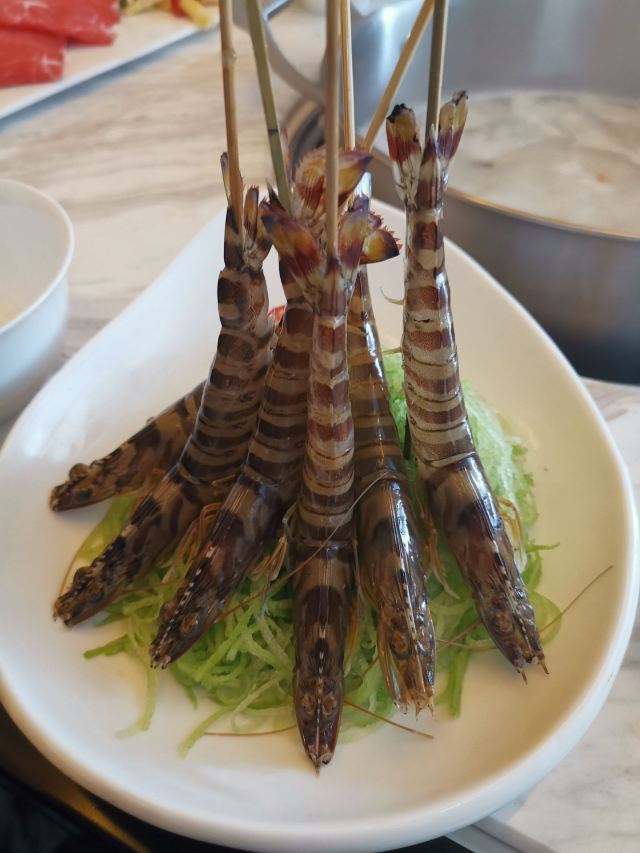 花竹斑节虾,雪花牛肉粒,招牌松茸清汤底,和牛,厚切特级黑毛牛肉,港式炸响铃,蘸料,鲍鱼,虾滑酿油条,八味酱料