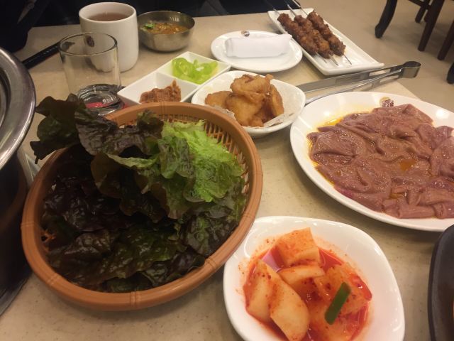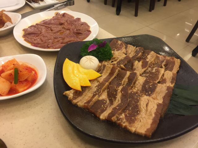 烤牛肉店中的翘楚了,每次去几乎都要等座,人总是很多,服务一般,菜味很地道熏酱的猪蹄等特别烂呼好吃想,肉质鲜嫩,酱料好,冷面特别好吃,价格小贵