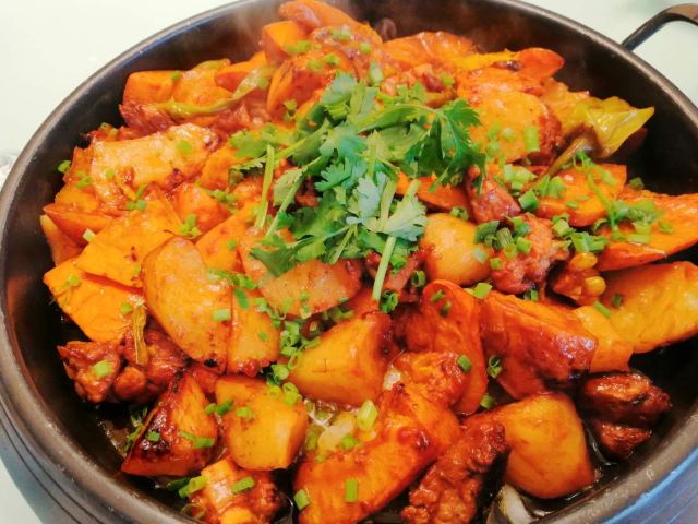 大馅饼,海鲜全家福,金牌酥皮虾,玉米汁,石锅豆腐,牛肉粒,速冻馅饼,锅包肉,特色烤羊排,九转大肠,海鲜麻辣香锅,糖饼,韭菜盒子,基围虾两吃,清蒸富贵鱼,秘制碟鱼头