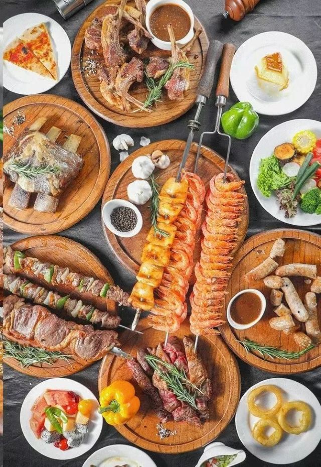 极佳级牛小排皇,传统肉酱意大利面,芝士肉酱焗意粉,餐包,冰淇淋,蛋挞,火爆辣鸡香蒜披萨,披萨,果木肥牛烤排,果木极爽牛颈排,罗宋汤,安格斯牛排,红酒,自助沙拉,牛尾浓汤,鹅肝,果木去骨牛小排,果木安格斯雪花牛排,芝士焗肉酱意大利面,各种牛排,咖啡