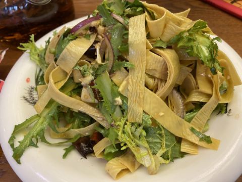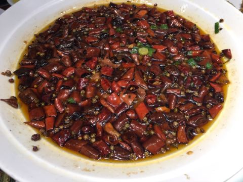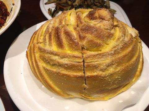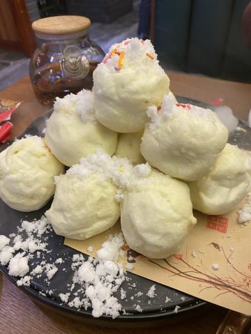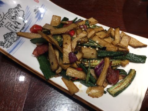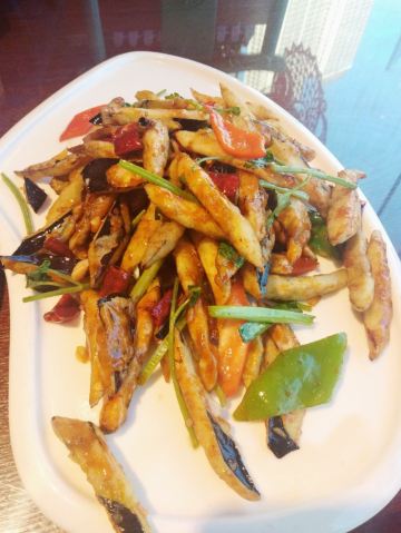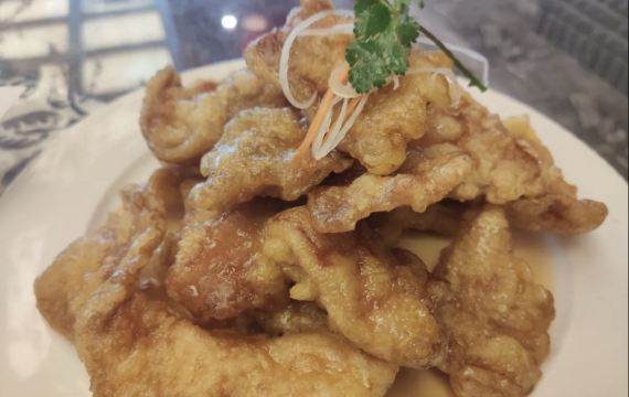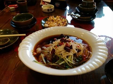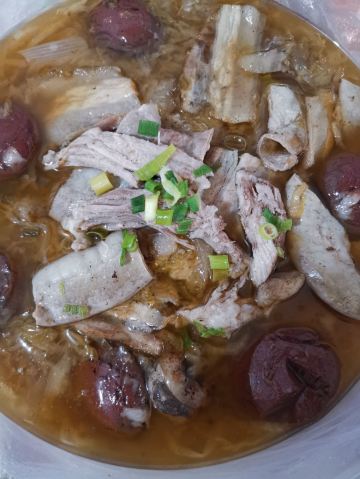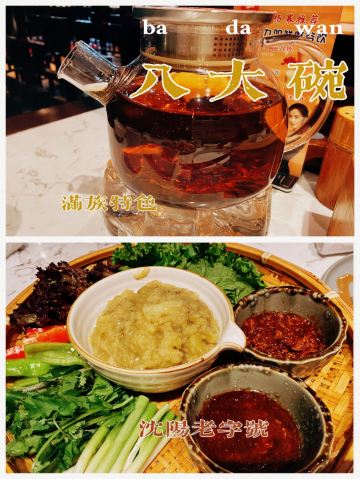 陌染MM去辽宁旅游,这一站来到了沈阳,别人建议可以尝一下当地的特色——八大碗,直接搜到有这个餐厅,打车过来了。餐厅的装修比较古色古香,也有不少当地人在用餐,也就是当地人也认同了,不少单纯的游客餐厅。经理说我们三个人吃不完八大碗,建议挑一些,{雪绵豆沙}不错,是主食,也就是豆沙包,过油锅捞起来,旁边放了干冰,有烟幕,主要还是豆沙不会很甜,而且很顺滑,好吃多了,虽然看着放进油锅里滚,但是居然抓起来没有感觉到油腻,这点不错,粤菜达不到这个境界。 点菜需要在点餐区点,有图片,或者是展示品,一心想要吃小鸡炖蘑菇,但是为什么东北本土的做法和在广州的东北菜馆吃到的完全不一样,不喜欢这里的做法,这鸡好像是炆的,也没有汤汁,感觉蘑菇也没有,可能那种黑黑的一坨东西吧。 {海参蹄筋},这个菜不错,非常好吃,但是价格也挺贵的了,特别是这个城市的消费水平不高,蹄筋有不少,真的蹄筋,海参的分量也不错,可以说是一分钱一分货,货真价实,而且很入味炆的很淋,海参应该是用的新鲜海参?反正不会腥。 {凉拌鲜豆皮},这里的豆皮好像腐竹皮那样子,薄薄的,很有豆味,和其他餐厅吃到的厚一点的不一样,经理说是他们自家做的豆皮,怪不得很有豆味,调味刚好,不会特别重口味,可以做不辣的。