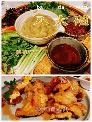 BADAWAN入选携程美食林风味的店,主打东北大锅菜。 周末去的,不好停车。店内除了散台还有包房,厨房明档就在过道上,热气腾腾的炖菜特别诱人。 店员的服务态度很好。菜品量不小,冰镇咕老肉是冰的口感,甜甜的,外酥里嫩。小炒鲜味茄特别好吃,还不油。年猪烩菜是酸菜杀猪菜,量巨大,里面还有五花肉,拆骨肉,血肠。 整体挺好的,适合聚餐。