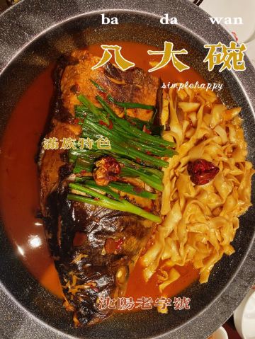 simplehappy102沈阳美食|东北风味的茶餐厅|八大碗 🍎Hello,大家好,我是简单,很高兴与大家分享生活中的美好 🍊假期啦,假期啦,又到假期啦。 这次清明节,因故来沈阳玩儿,最后一天是在辽宁广播电视台,为了找地方停车,就选择了这里,佳兆业广场,没想到,这里还有这样一家好吃的餐厅:八大碗。 🍋 八大碗是满族传统特色美食餐厅,主打东北菜,餐厅整体装修风格是古色古香的中式设计,有屏风隔断,有特色背景墙。 🍏菜品特色: 🟢鸿运当头: 餐厅主打的特色菜,一个超大的鱼头,炖的香香的,汤汁特别浓郁,鱼头非常入味,鱼皮有点焦香,鱼肉很细嫩,小朋友第一次吃鱼头,竟然也大呼好吃😋 🟢老式锅包肉: 传统东北特色的锅包肉,很纯正,肉很嫩,外面的糊(hu)很薄,特别好,外面的糖汁有点甜,牙不好的同学要注意了。 🟢妈妈味的土豆茄子: 特别接地气的一道菜,特别有东北味儿的一道菜,大大的竹编托盘里,中间是一碗土豆茄子泥,搅的非常细,一点颗粒都没有,四周是各种配菜,生菜,紫生菜,葱段,香菜,青椒,红椒,还有两碟酱,鸡蛋酱和拌菜酱。 正确吃法: 选一叶生菜,加一勺酱,填一勺土豆茄子泥,加上自己喜欢的菜。完美 🫐实用信息: 店名:八大碗 地址:青年大街佳兆业广场6楼 人均:70元 停车服务:商场地下可以停车🅿️ 🍇就酱,喜欢的➕关注,欢迎收藏分享 推荐更多生活中的美好给大家,比心💗