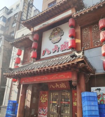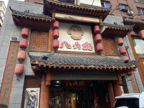 八大碗参照中式仿古的装修风格,细节处精益求精,墙体、灯笼采用人工手绘,餐饮环境宾至如归。八大碗——来自民间的满汉全席,其菜品既有中国传统风味,又加入了满汉全席的细致美观,将传统的东北菜演绎的淋漓尽致。
