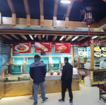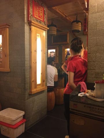 大清花的店面装修风格上属于清元素主题,门口安着两尊大炮,有点康熙时期的神武大炮的感觉!店内环境特别有特色。饺子和菜的味道也都不错