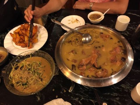 饺子是有很多种馅料可以选择的,拉皮和锅包肉是必须要吃的非常好吃😋拔丝地瓜也是非常经典了👍