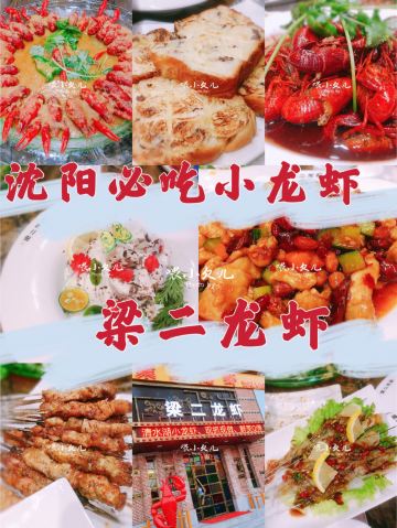炝莲白,十三香小龙虾,椒盐水煮鱼,蒜香小龙虾,龙虾面,羊肉串,麻辣小龙虾,生烤鸡架,梁二大拌菜,红豆面包片,烤茄子,手擀面,飞刀土豆片,烤油边