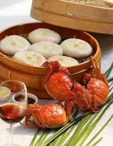 尚香蟹黄汤包,蟹黄汤包,蟹黄萝卜丝酥饼,蟹黄粉皮,丝瓜锅贴蚬子汤,蟹黄狮子头,粯子粥,松子烧麦,鲜肉包子,豆浆,清炖蟹黄狮子头,虾片拼年糕,腰果烧饼,明炉羊肉