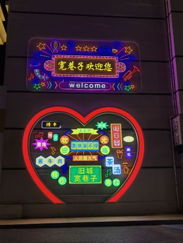 夜晚的宽巷子无比美丽,今天最后一个项目就是夜游宽巷子,哈哈哈!有一部分店铺已经关门了,貌似这里的商家开关门都很随性,有的只开半天儿就关了,这样可真舒坦!随着夜幕降临,夜间照明全开,宽巷子就像一条银河带一样,在清真大寺的北侧,烤串,焙子,熟食店,还有遛弯的当地居民,好热闹呀!