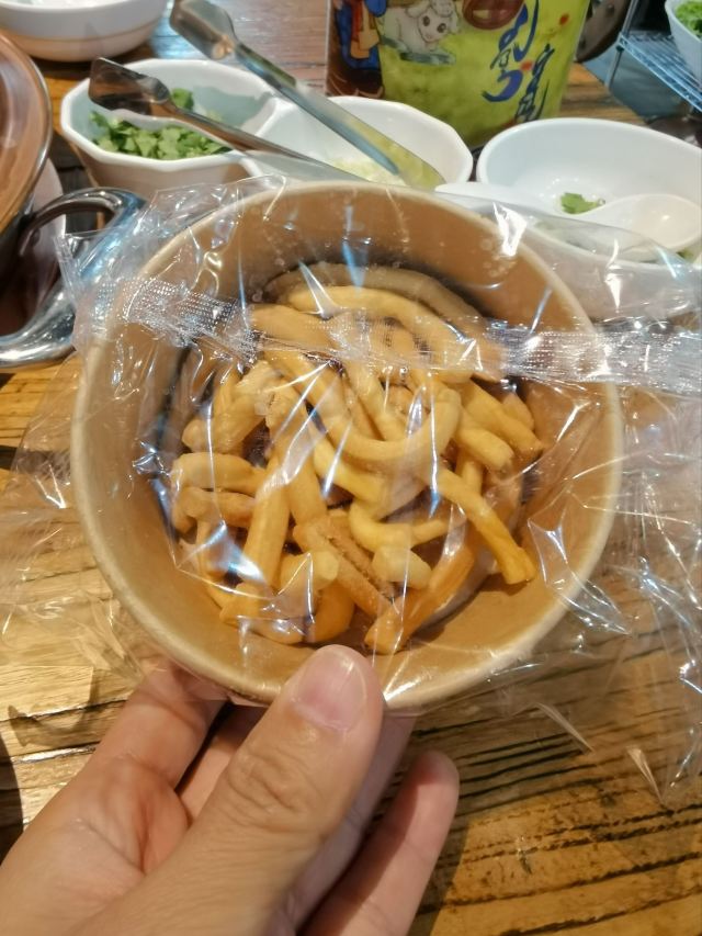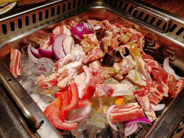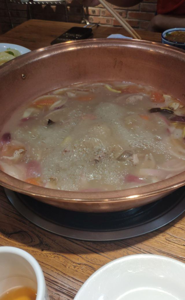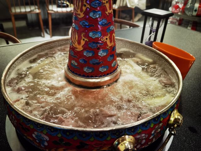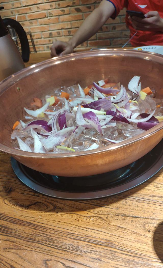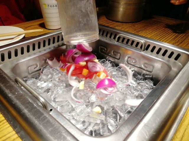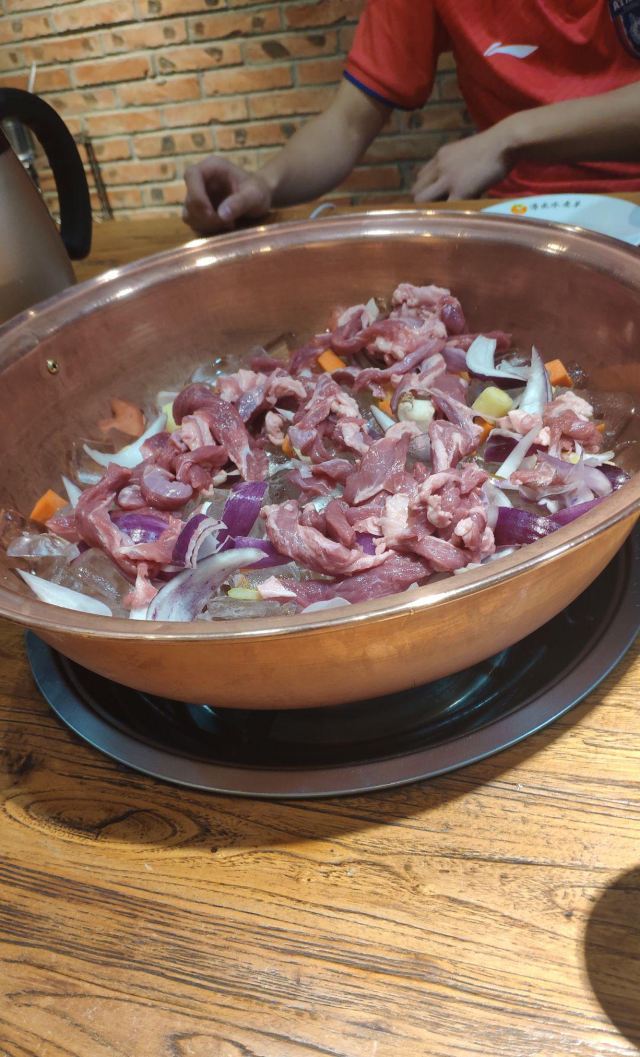 YoYo_0R7I5H5H一直都是吃现成的羊肉,总觉得烧烤才过瘾。看到服务员熟练的操作还是震惊了!纯净水+冰块+鲜羊肉通通放在锅里,打火盖盖子,10来分钟就被喷出的香气扑鼻所折服。来不及晒图就开始大快朵颐了!