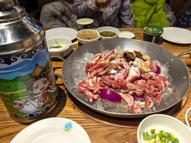 泽成冰煮羊是内蒙另外一种很独特的羊肉吃法,据说是成吉思汗发明的吃法,用冰块煮羊肉,佐以各种珍奇辅料,这样煮出来的羊肉特别鲜嫩,美味至极。
