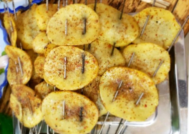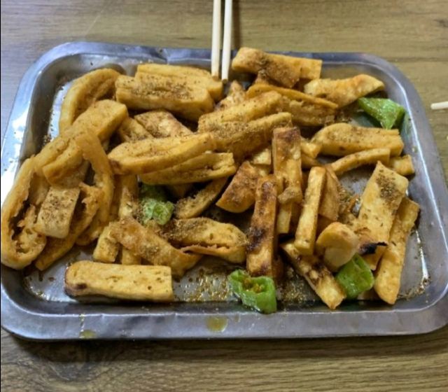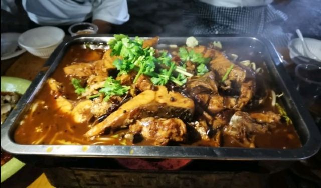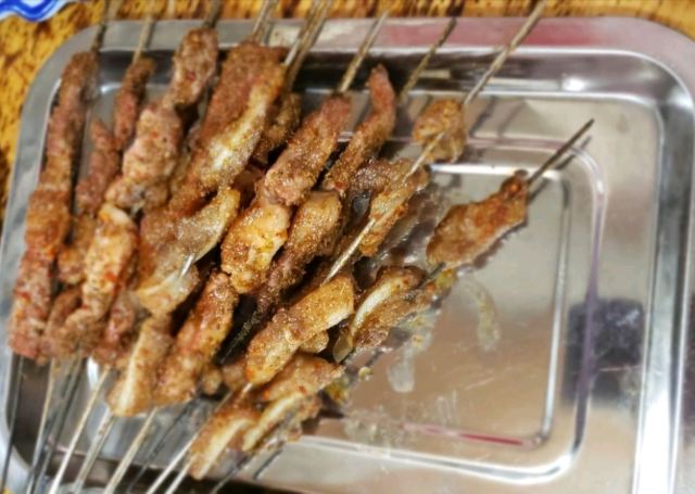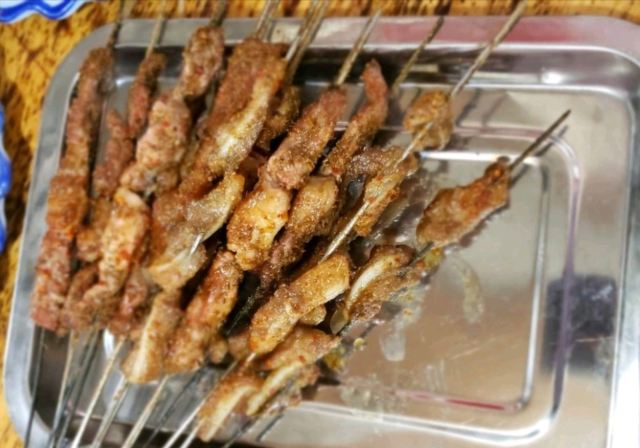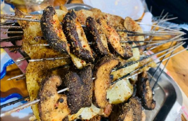 腰子,蟹爪,韭菜金针菇两掺,碳锅黑鱼大份,烤鱼,小羊肉串,花甲,烤脆骨,烤羊肉串,烤馍,腰子夹烧饼,油炸饼,土豆片,烤香菇,炒方便面