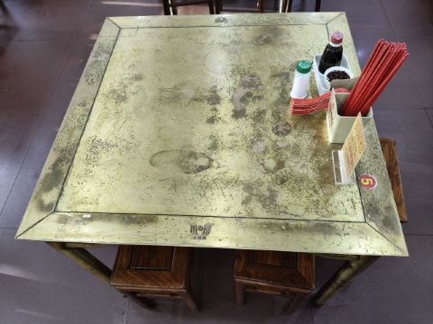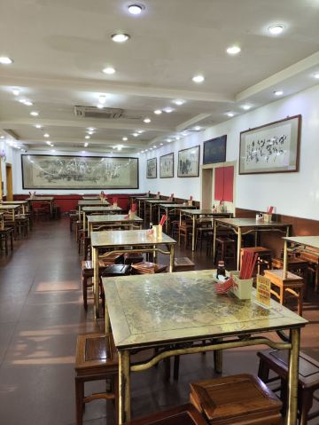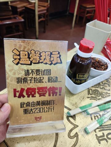 二十多年的烩面老店,就是汤底有点儿咸 从河南博物院出来,接受了一下午文化熏陶的我们,才想起来中午着急参观,连午饭都还没吃,早已饥肠辘辘。好在提前在网上查过,酒店对面就有一家开了二十年的烩面老店,惠丰源烩面馆,直奔饭店,却吃了个闭门羹。 这就是郑州老店的做派,只在饭点营业,其余时候看心情。卖早餐的就是卖早餐,胡辣汤一般中午就不卖了,烩面板面就是正餐,十一点开业,早饭绝对吃不到。卖正餐的店下午两点以后肯定休息,休到五点还是六点,这就看老板的习惯了,他家是五点半开始营业,回屋休整一下,五点半又来一次,终于吃上了。 吃烩面主要是为了娃,一会儿还要吃别的,所以就没点别的东西,直接要了两大碗烩面,18一碗,有香菜木耳豆腐皮,没有大葱,很好,适合我们家。 店里装修很古朴,长长窄窄的一溜,散台二十来张方桌,还有包间。桌子用黄铜制作,一张桌子460斤,好处是很显贵气,并且特别稳,在这吃面,完全不用担心谁不小心碰到桌子把你的面撞翻,因为根本连晃都晃不动。我们打趣说,这样也挺好,什么时候不想干了,卖桌椅也能挣个养老钱。 交完钱给烩面票,上面以后收回,我都多少年没见过这玩意儿了,小时候在我们县里的国营烩面店吃饭才能见到的东西,从一个侧面证明他家是实打实的老店了。 面上的挺快,要了个小碗分面,开吃。汤底是正宗的羊肉汤底,不说多惊艳,但扎扎实实,味道很厚重,就是有点儿咸了。烩面抻的也很标准,不像有些店偷工减料整得很厚。加上羊油辣子,就是一碗标准的河南烩面。面量不算大,但好处就是离河南博物院特别近,参观时顺便来喝一碗特别方便。 我吃有点儿咸,但我娃不喝羊汤,是把烩面捞出来干吃的,她这个吃法就正好,面上没汤就不那么咸了。她吃的很开心,所以第二天中午又陪她来吃了一顿,给五一的郑州之旅画上一个圆满的句号。