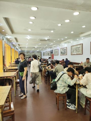 桃子妖妖妖二十多年的烩面老店,就是汤底有点儿咸 从河南博物院出来,接受了一下午文化熏陶的我们,才想起来中午着急参观,连午饭都还没吃,早已饥肠辘辘。好在提前在网上查过,酒店对面就有一家开了二十年的烩面老店,惠丰源烩面馆,直奔饭店,却吃了个闭门羹。 这就是郑州老店的做派,只在饭点营业,其余时候看心情。卖早餐的就是卖早餐,胡辣汤一般中午就不卖了,烩面板面就是正餐,十一点开业,早饭绝对吃不到。卖正餐的店下午两点以后肯定休息,休到五点还是六点,这就看老板的习惯了,他家是五点半开始营业,回屋休整一下,五点半又来一次,终于吃上了。 吃烩面主要是为了娃,一会儿还要吃别的,所以就没点别的东西,直接要了两大碗烩面,18一碗,有香菜木耳豆腐皮,没有大葱,很好,适合我们家。 店里装修很古朴,长长窄窄的一溜,散台二十来张方桌,还有包间。桌子用黄铜制作,一张桌子460斤,好处是很显贵气,并且特别稳,在这吃面,完全不用担心谁不小心碰到桌子把你的面撞翻,因为根本连晃都晃不动。我们打趣说,这样也挺好,什么时候不想干了,卖桌椅也能挣个养老钱。 交完钱给烩面票,上面以后收回,我都多少年没见过这玩意儿了,小时候在我们县里的国营烩面店吃饭才能见到的东西,从一个侧面证明他家是实打实的老店了。 面上的挺快,要了个小碗分面,开吃。汤底是正宗的羊肉汤底,不说多惊艳,但扎扎实实,味道很厚重,就是有点儿咸了。烩面抻的也很标准,不像有些店偷工减料整得很厚。加上羊油辣子,就是一碗标准的河南烩面。面量不算大,但好处就是离河南博物院特别近,参观时顺便来喝一碗特别方便。 我吃有点儿咸,但我娃不喝羊汤,是把烩面捞出来干吃的,她这个吃法就正好,面上没汤就不那么咸了。她吃的很开心,所以第二天中午又陪她来吃了一顿,给五一的郑州之旅画上一个圆满的句号。