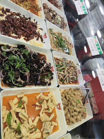 烩面,凉拌面筋,卤牛肉,干煸豆角,卤鸡爪,荆芥黄瓜,凉菜,凉拌牛肉,牛肚,素鸡,羊肉汤,小碗羊肉烩面