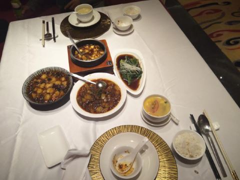 中餐厅菜品色香味俱全,菜量适中,摆盘精美。