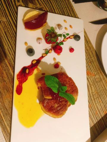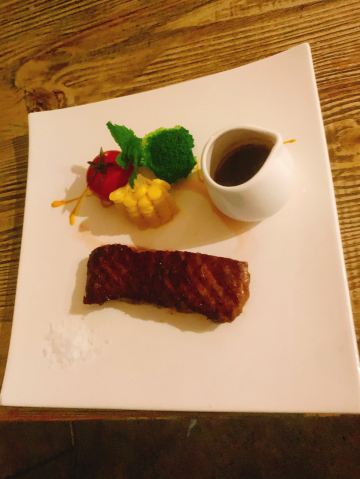 牛肉肉质很嫩,胡椒汁调的非常地道。三文鱼也很好吃,特别的新鲜,厚厚的一片,吃着一点也不腻