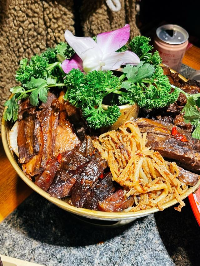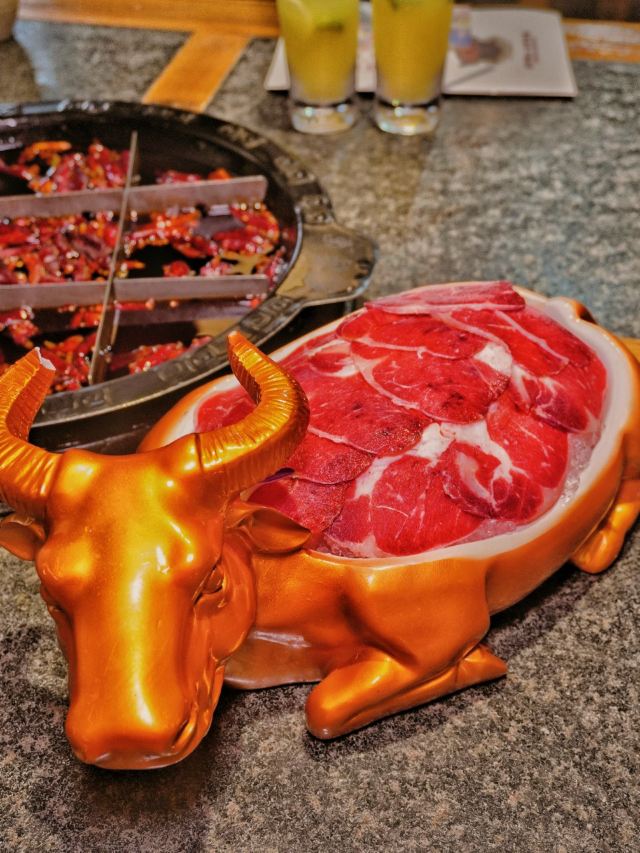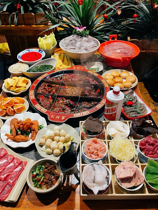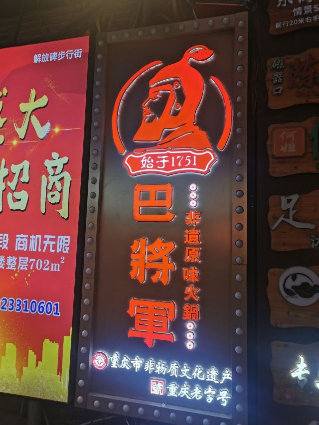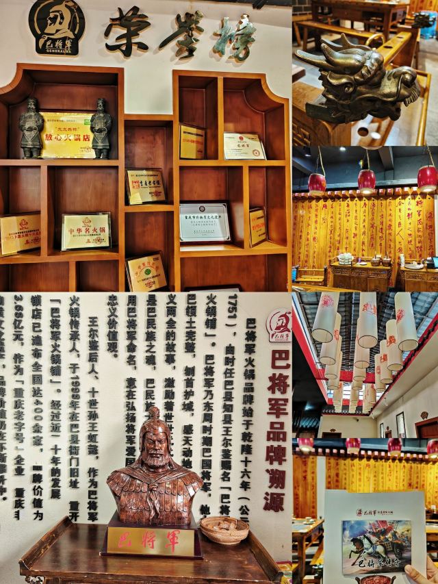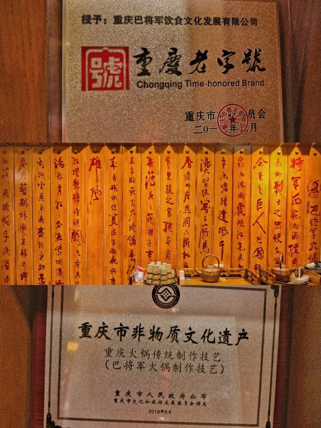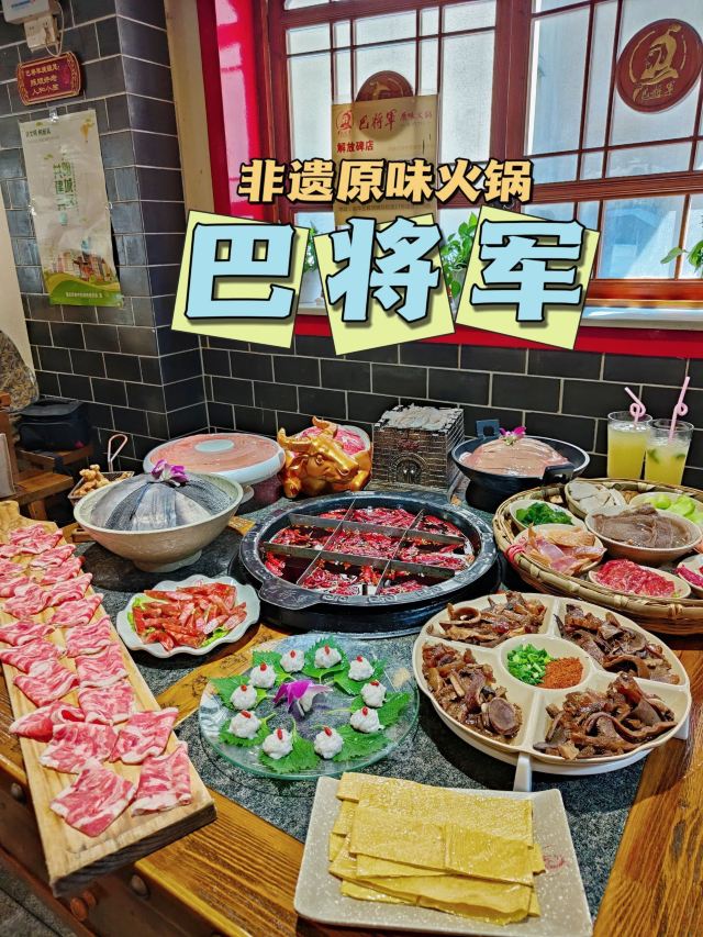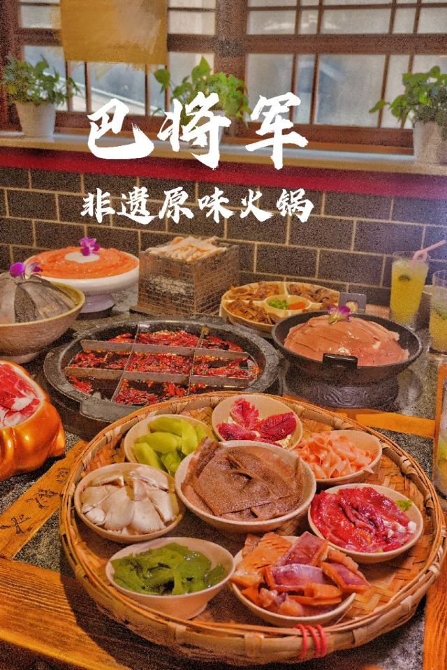 非遗传承好味道|巴将军老火锅 赏重庆美景,品重庆美食。知道什么是地道的重庆老火锅么?那今天就一起打卡拥有百年历史的火锅吧~ 在解放碑商圈里有一家,以一位爱国将军~巴蔓子将军命名的火锅店-巴将军非遗原味火锅。他家的底料麻辣鲜香,作为著名的非遗底料,需要经历四个小时的慢火炒料熬制,然后还要经历15天的陶缸自然发酵。他家锅底堪称一绝!而且他家还用泥塑把整个底料制作工序非常详细清晰的展示了出来~🉑️ 🏘店名:巴将军•非遗原味火锅 ⛩地址:解放碑商圈内,民权路17号附3楼,其实看到督邮街的大标志,进入后就能发现他家~ 🚇交通:公交车非常方便,地铁1/2号线都可到达,开车可以停在附近的商场停车场🅿️停车非常方便。 🌟环境:宽敞明亮,舒适整洁,店面很大,分为室内和室外并且有包间。 菜品推荐🥘 将军巴大碗:一次性满足选择困难症福音,8个不同的菜品,荤素搭配,毛肚鸭肠肉片等等。 火锅第一菜:这个真的强烈推荐大家!满满一大份卤制的牛杂,牛杂卤香四溢并且卤得特别耙,老年人都吃的动,🉑️直接吃🉑️烫火锅。 将军腰片王:比巴掌大的厚实腰片,就和爽直的重庆人一样,分量十足,每一片都又大又厚;一口下去,麻辣爽口,没有一丝异味。 牛气十足:一头金灿灿的“牛”带着他的肉肉上来时,让人眼前一亮,仙气飘飘中是鲜嫩爽口的牛肉,肉质紧致新鲜。 他家不仅味道好,服务也特别棒,炒饭、冰粉、小甜品等都是自助台自行拿取~。 吃吃喝喝愉快的一天,🌜 𝘎𝘰𝘰𝘥 𝘯𝘪𝘨𝘩𝘵🌛 星星眨着眼,月亮在看我,美好的一天完美结束,下次再见👋