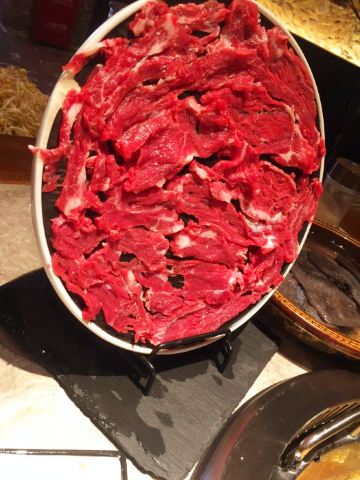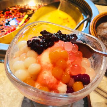 兔兔不吃萝卜环境: 店很大~装修风格还不错,有-点欧式古堡的感觉。-共四层楼,有一个负-楼,我下去看了一下,没有走完,没有坐客 人我就上去了,我们在一楼吃的,去晚了没有靠窗的位置了,二三 楼也没有去参观到~但是就一楼环境就很不错了~ 服务: 必须郑重的说了, 服务员小姐姐太有耐心了, 关键是长得特别漂亮,不夸张的说,跟海底捞的服务都有得一拼~最 后我们走的时候说看我们喜欢吃甜品,还送了一个小礼物给我们~爱了~ 口味: 鸳鸯锅的汤很好喝,红汤不是特别辣,但是很有味道,也不会有腻的感觉。给大家隆重推荐他们家的吊龙~好好吃~真的 要点~绝对不会后悔!还有那个鱼籽虾滑也好好吃~牛血也要点赞口,最后就是我们两个人吃了6分甜品, 3碗冰汤圆哈 哈哈哈哈~