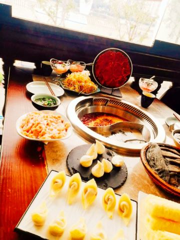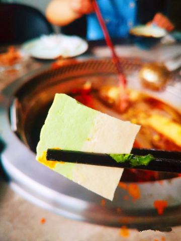 时间内虽然是一家火锅店,但它的装横丝毫不输民国电视里的酒吧。在这里,除了吃火锅,还有很多游客慕名而来拍照,一睹为快这幢美国使馆吧的原貌。 店里的装修很有古典风格,一脚踏入店里,扑面而来是的火锅的香气,服务生把我们引到一个窗户边的座位上,然后给菜单让我们点菜,服务态度也特别的好,很亲切的给我们介绍招牌菜,端茶倒水也始终面带微笑(=^▽^=)。窗边的风景很美,从窗户往下望去,南滨路上的万家灯火阑珊,很温暖的感觉。这家店挺适合晚上去的:窗边、夜景、偶尔呼啸而过的轻轨,身边的亲友围坐一团一起吃火锅,美哉!对啦,他家的菜品有几个深得我心,强烈安利给集美们!鲜鲳鱼,肉质细嫩,有海鲜的特有风味,涮烫2分钟即可食用啦!鸳鸯豆腐,这道菜是由蔬菜汁染制而成的双色豆腐,营养健康。我当时特意滴几滴香油进去,几个小朋友很爱吃。我最喜欢的还是板栗南瓜:适合清汤锅,吃起来甘甜绵软,就像吃栗子一样!他家其他菜品都还可以,没有踩雷的菜哦,可以放心过来体验啦